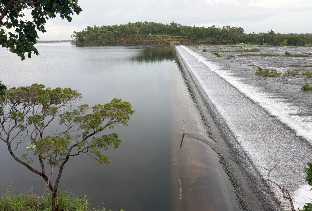 The dam is the Territory capital’s main water supply and has temporarily ceased operations due to equipment being flooded amid heavy rain.
